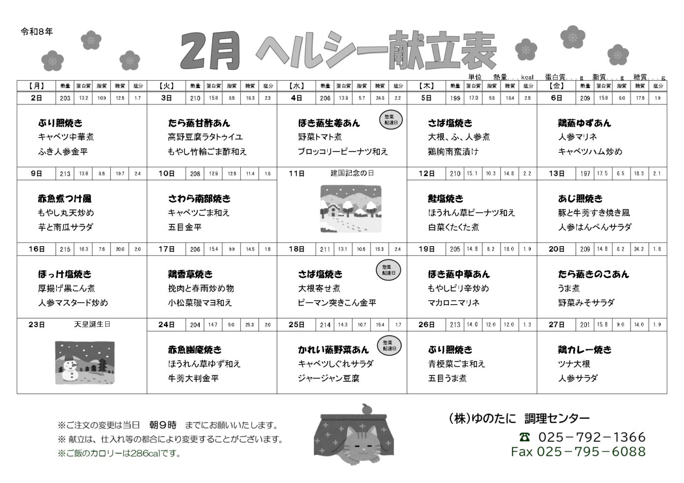 [宅配弁当]2月のメニューを公開しました