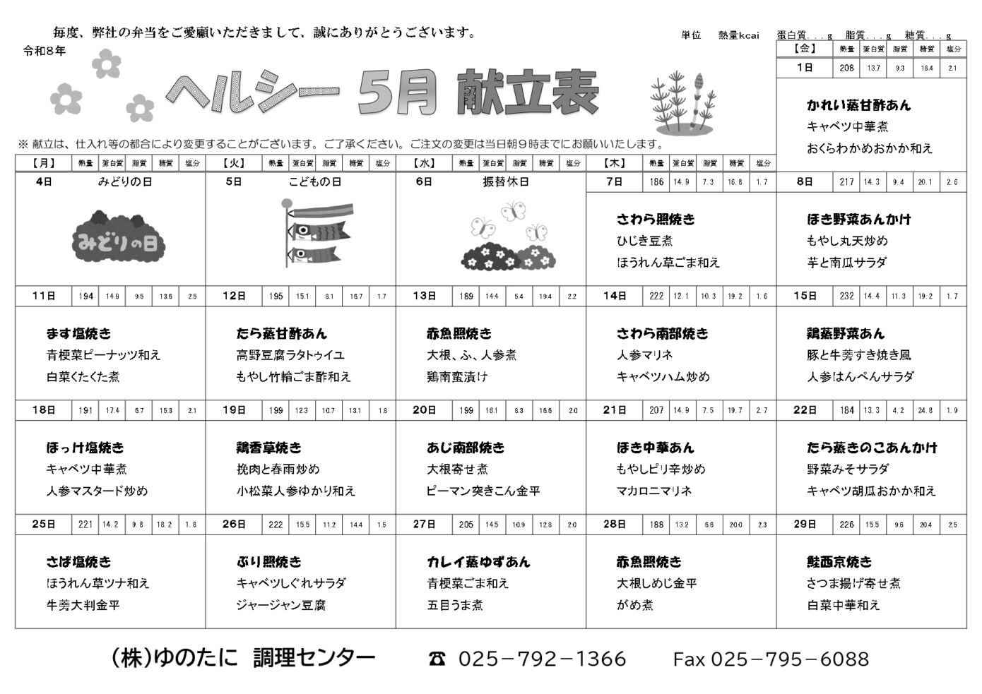5月のメニュー表を公開いたしました。